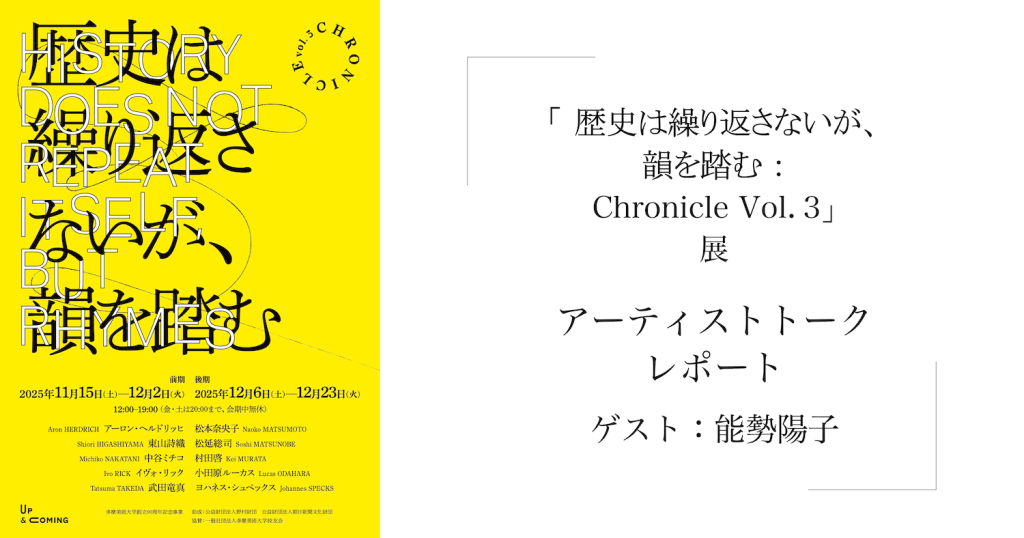 「歴史は繰り返さないが、韻を踏む:Chronicle Vol. 3」アーティストトークレポート(ゲスト:能勢陽子)